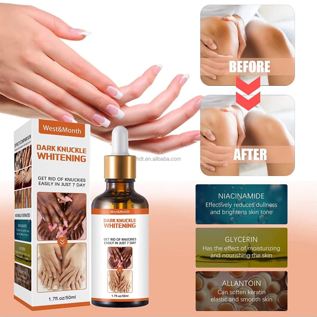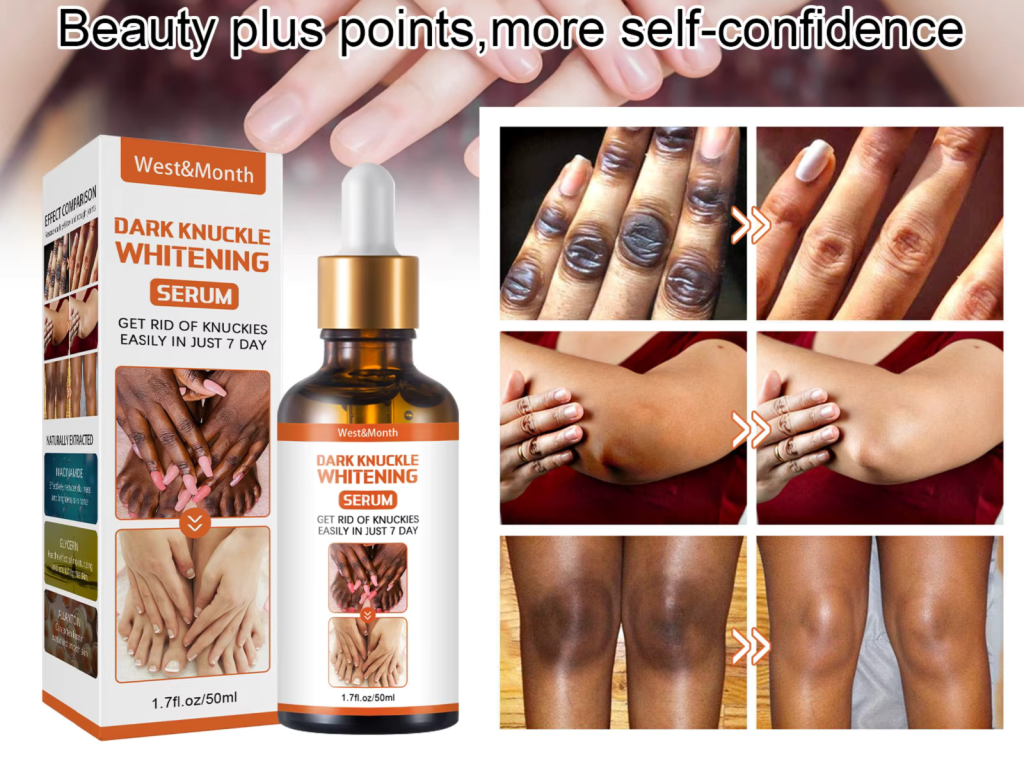 Strong Results on Tough Areas OUR WEST & MONTH DARK KNUCKLE WHITENING SERUM works on dark knuckles, elbows, knees & hands, giving you the confidence to flaunt your natural beauty.